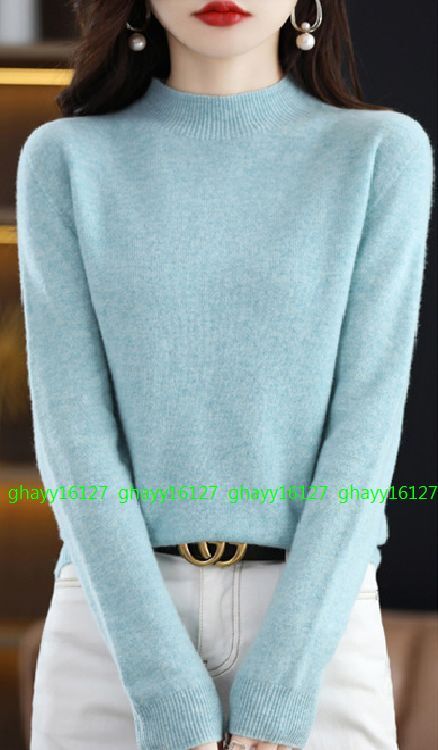 - L柔らか上質カシミヤ100%★ベーシック&シンプルハイネックニット♪水色L