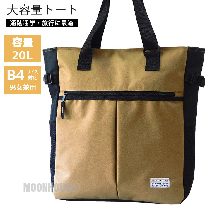 - 送料無料 大容量 20L トートバッグ メンズ レディース 男女兼用 ファスナー ショッピングバッグ エコバッグ ショルダーバッグ ベージュ□