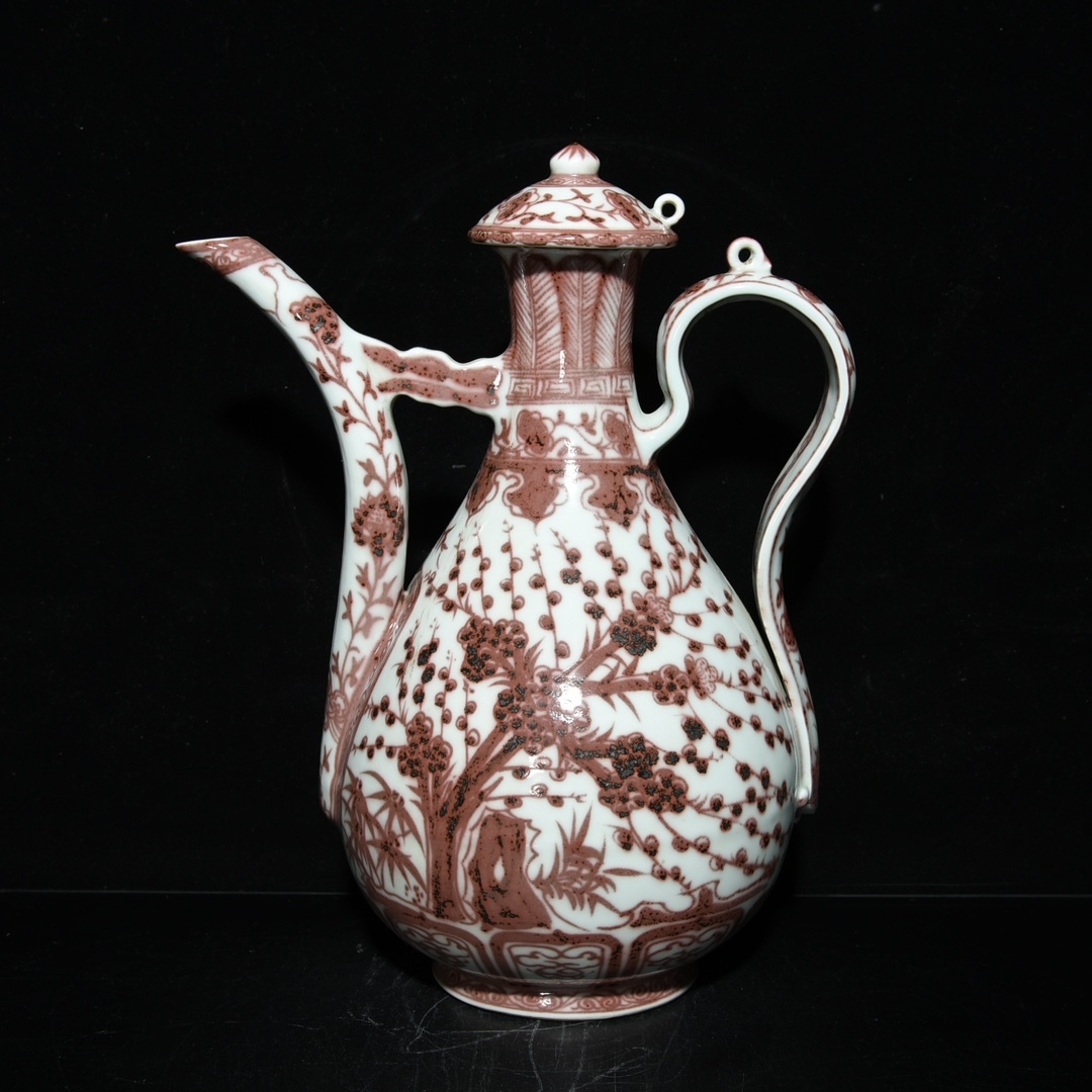 - LM503■明洪武 釉里紅松竹梅紋水注壺 時代物 古玩 唐物 古陶磁器■