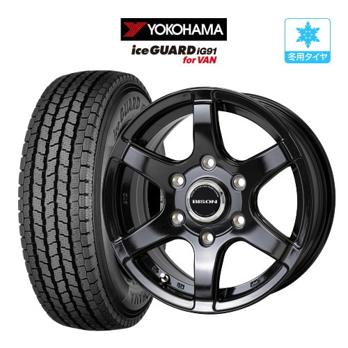- スタッドレス タイヤ ホイール 4本 6穴139 バイソン BN-04 YOKOHAMA アイスガード IG91V 195/80R15 ハイエース