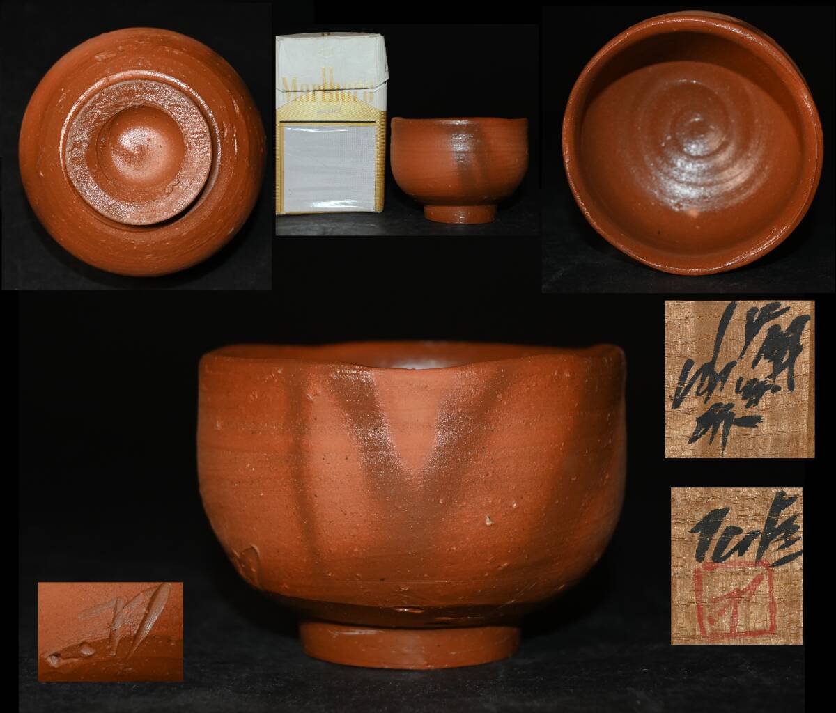 - 真贋保証■人間国宝 藤原雄 作■ 備前 火襷 酒杯 共箱・共布 緋襷 ヒダスキ 窯変 ぐい呑 酒器 酒盃 父:藤原啓 岡山県 検:日本酒 酒肴