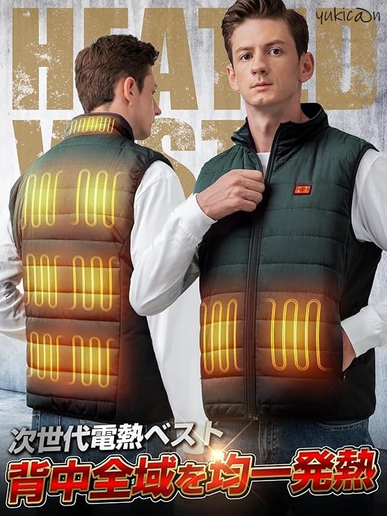 - 電熱ベスト ヒーターベスト XL グリーン USB給電式 10000mAh 3段階温度調節 速暖 PSE認証済み 防寒対策 丸洗いOK 節電 省エネ