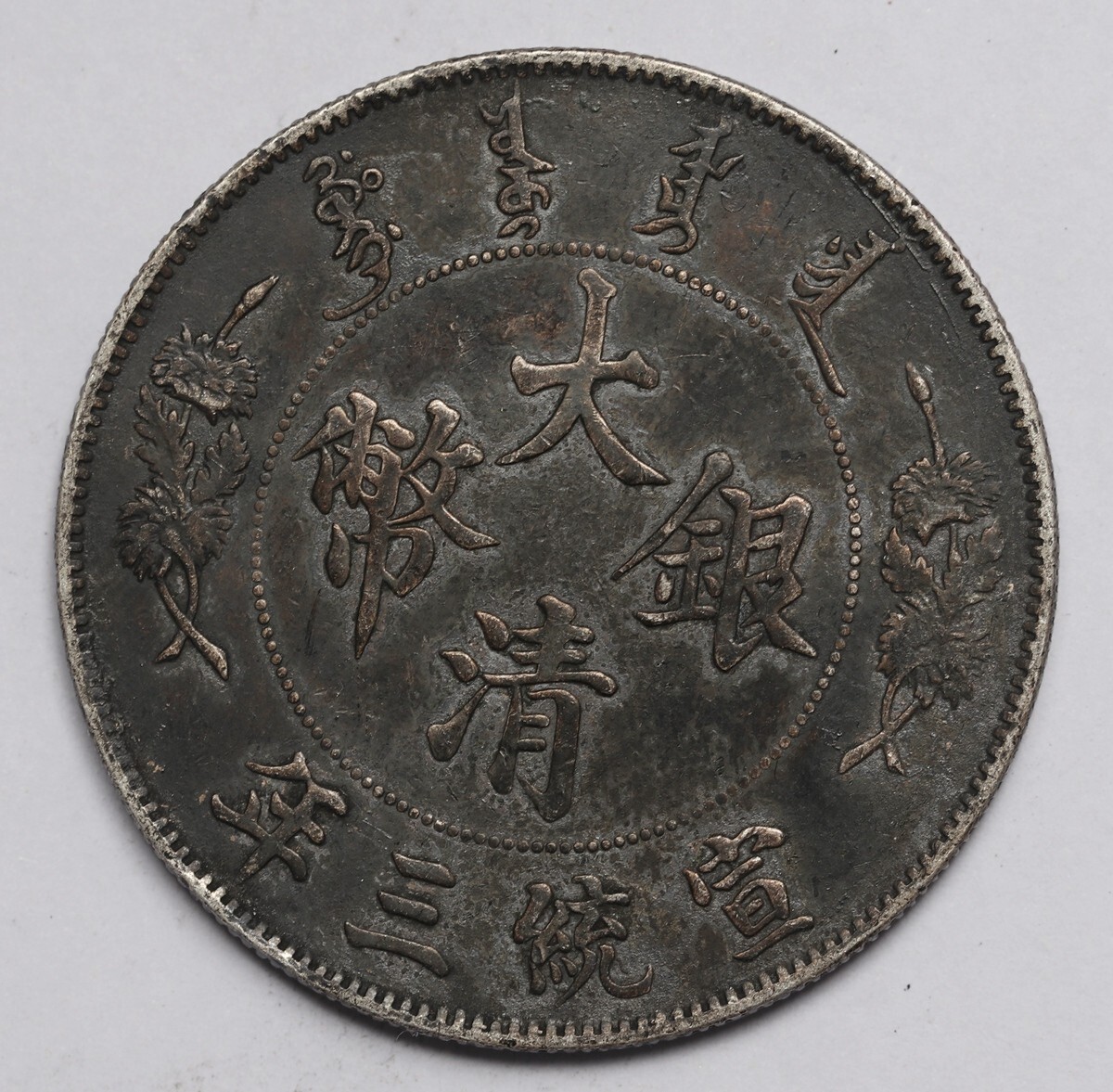 - 旧家蔵出し 中国古錢 大清銀幣 宣統三年 曲須龍 壹圓 銀貨 純銀保證 銀元 銀幣 古美術品 収集家 26.77g 39.1mm