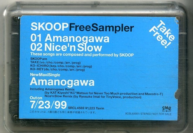 F00021607/シングルカセット/SKOOP (スクープ・SKOOP ON SOMEBODY・SOS・武田雅治)「Amanogawa / Nicen Slow (1999年・XCSL-92001・宣伝