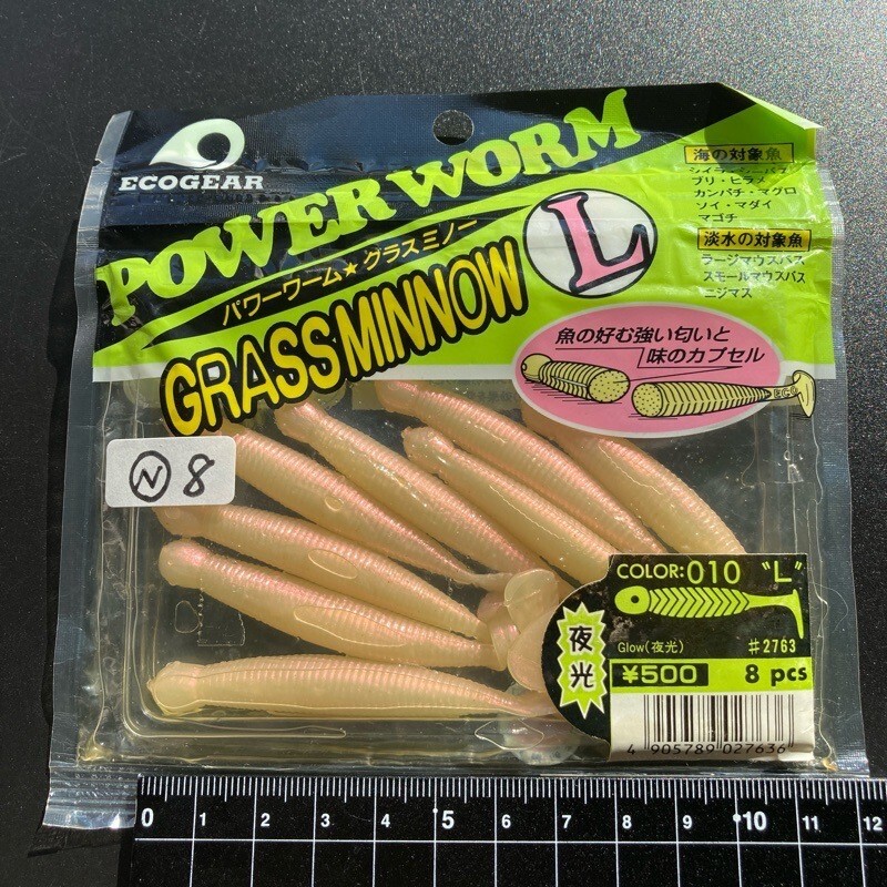 - 816100 新品 エコギア パワーワーム グラスミノー L #Glow夜光 ECOGEAR アイナメ メバル ソイ カサゴ マゴチ