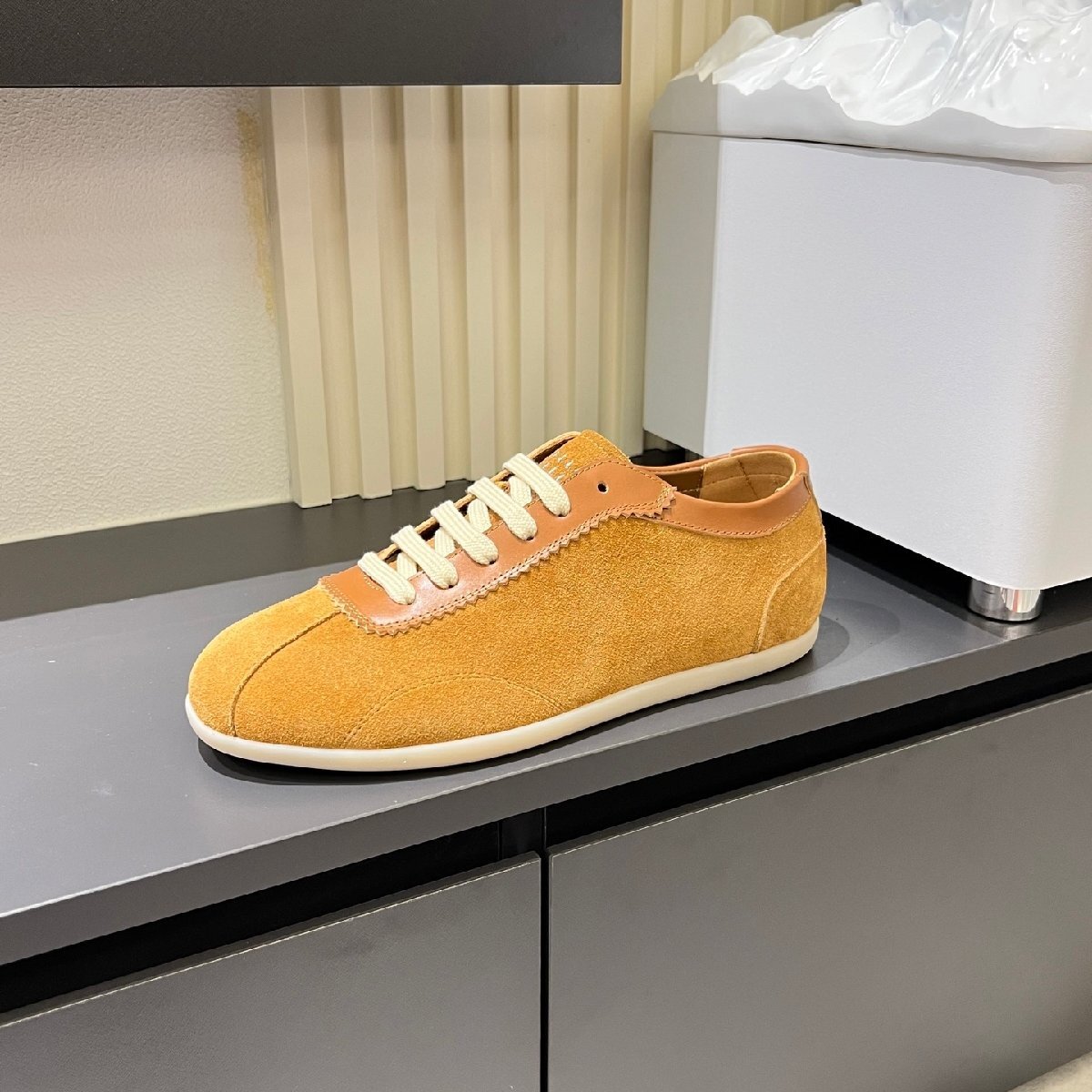 > イエロー26.5cm ★送料無料★ブルネロクチネリ★メンズ スエードスポーツシューズ, レースアップ, カジュアル, 軽量, ローカット