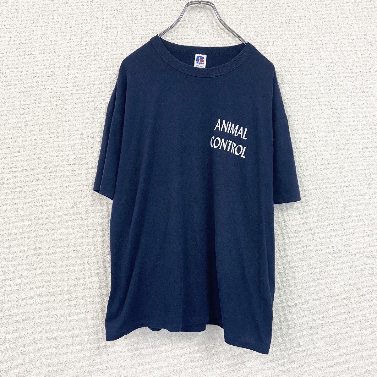 - 古着 used 90s RUSSELL ATHLETIC 半袖プリントTシャツ ヴィンテージ 紺 ネイビー XLサイズ
