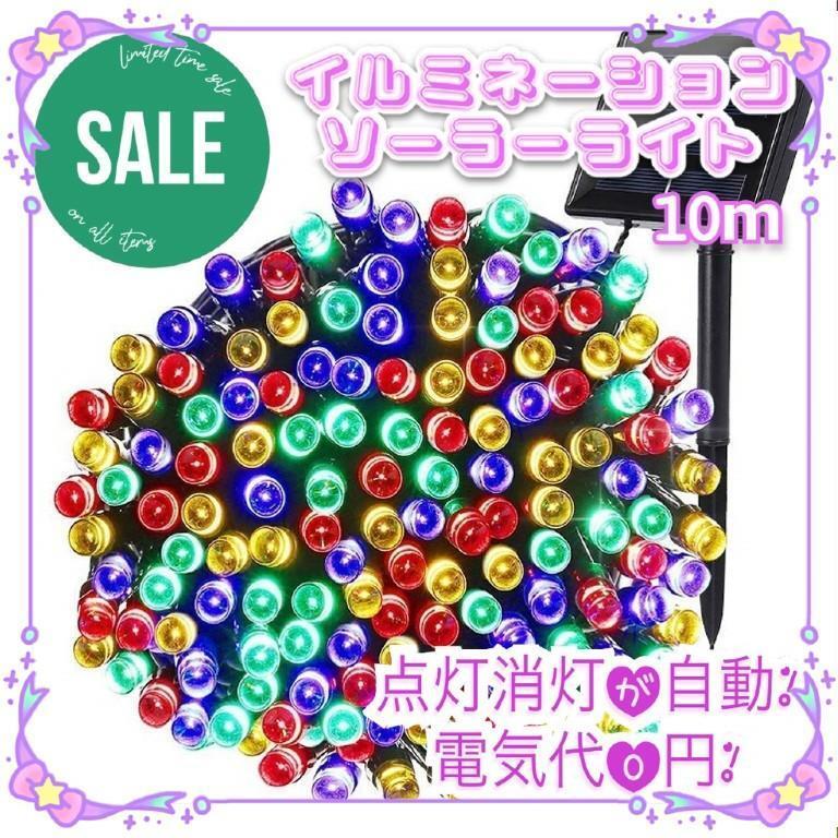 - ★限定特価★ イルミネーションライト 省エネ ソーラー充電 10m カラフル