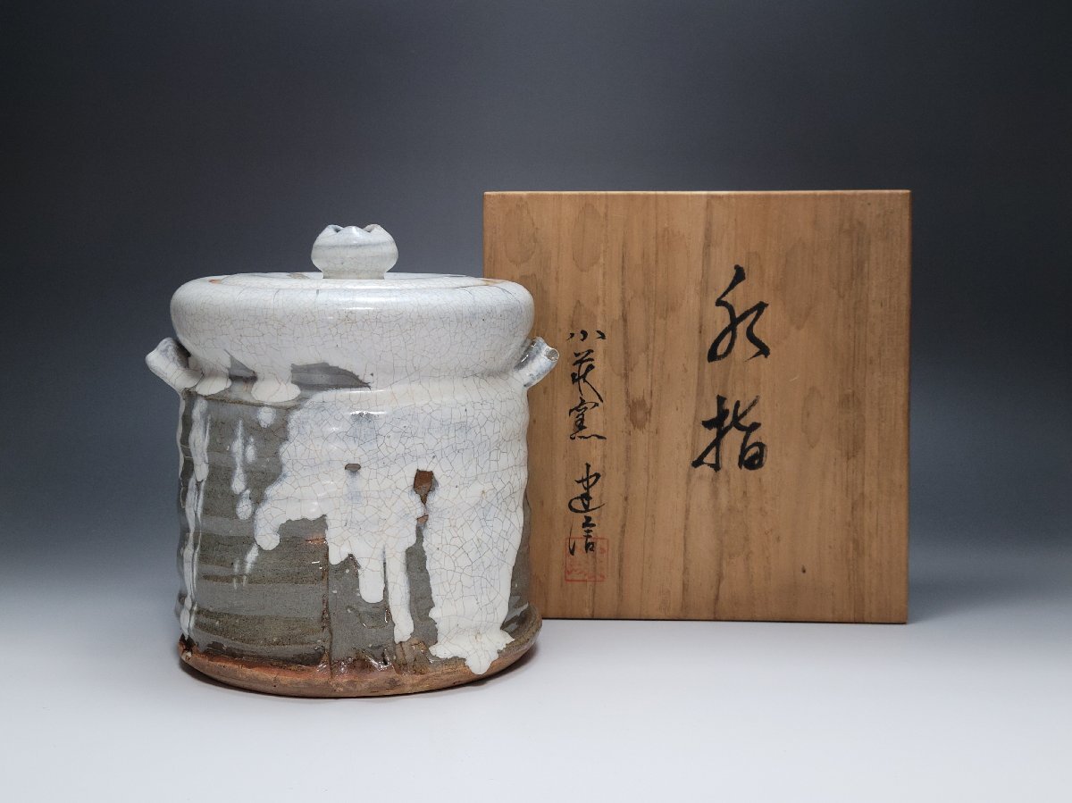 - 萩焼窯元 小萩窯元 厚東建信造 水指 共箱 高さ約18.7cm / 茶碗 茶道具 煎茶道具 茶器 人間国宝 李朝 高麗 唐物 古玩 古董 N2507B_020