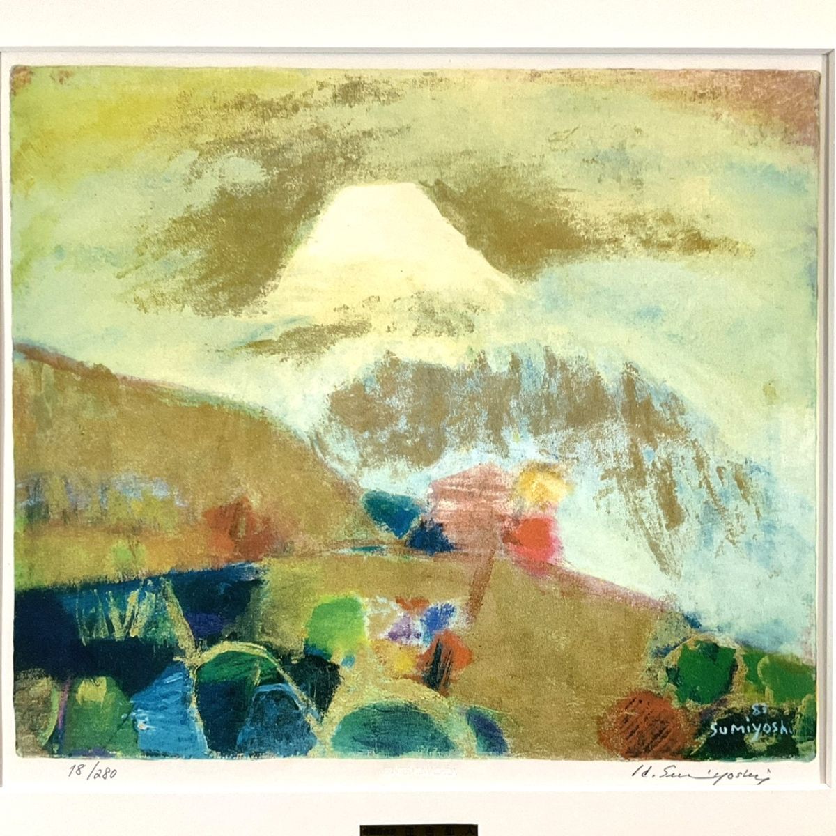 真作■版画■住吉弘人■『秋色富士』■春陽会会員■ 師:コンラッド・メイリ■額付絵画
