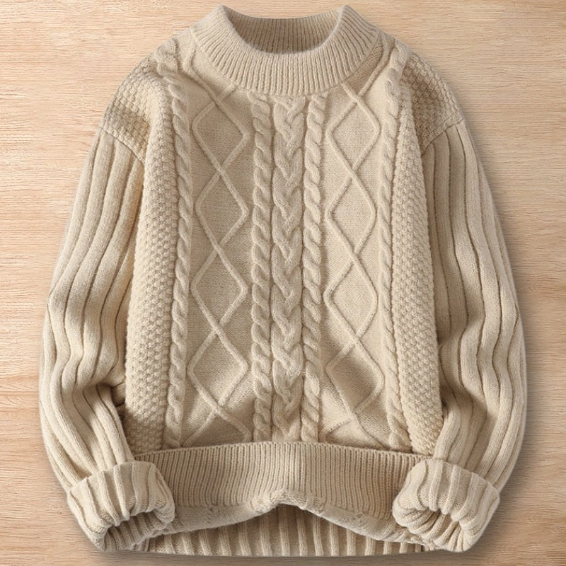- Y086-XL カーキ 新品DCKMANY ケーブル編み ニットセーター ウール混 プルオーバー ラウンドネック 秋冬トップス 厚手 暖かい メンズ
