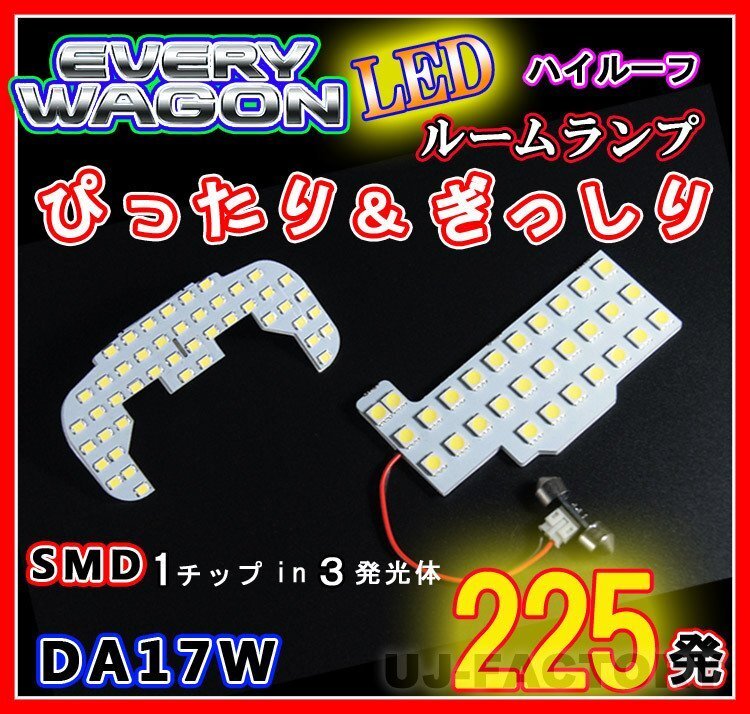 > 【即納】最強の明るさ 225発/1チップ3LED内蔵SMD/ルームランプセット(フロント+セカンド)エブリィワゴン DA17W ハイルーフ専用(HL07S4201