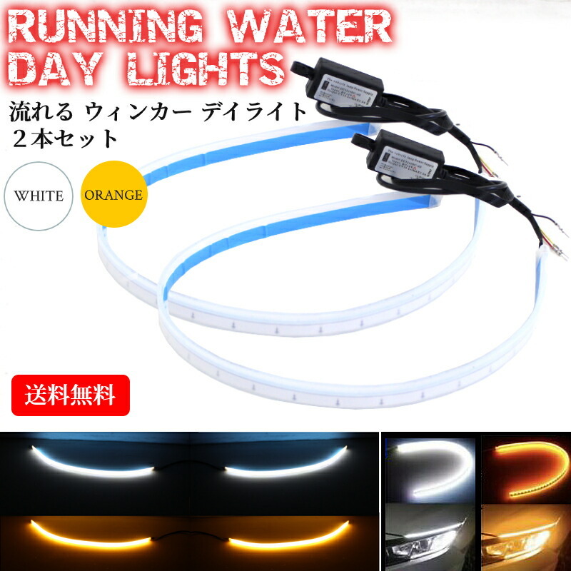 - 流れる ウィンカー デイライト LED テープ 60cm シリコンチューブ ライト 2本 12V 白 / 橙 2色 切替式 アイライン
