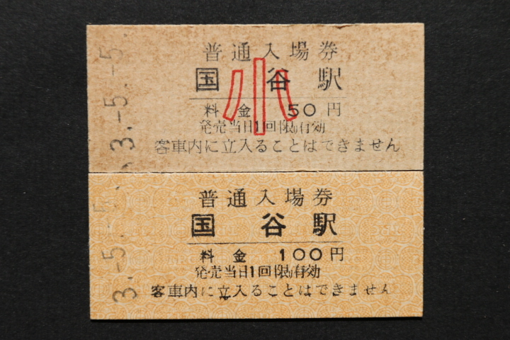 - 東武鉄道 入場券 国谷駅 大人券小児券2枚セット 100