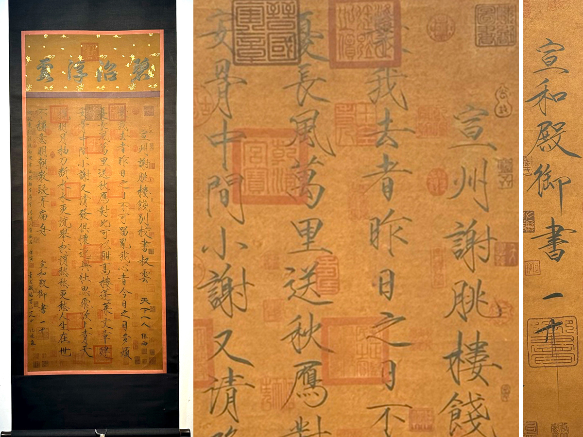 - ▽鴻▽古書道【宋時代「宋徽宗皇帝御書」紙本「書法」】 真筆肉筆 骨董書画 掛け軸 時代物 中国古美術 骨董品