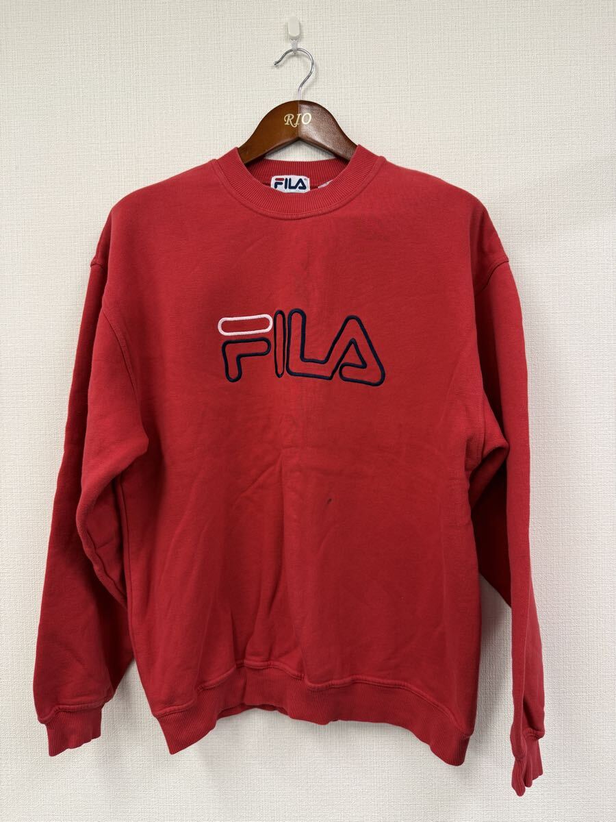 - 古着 USED FILA フィラ スウェット トレーナー レッド トップス ロゴ サイズM