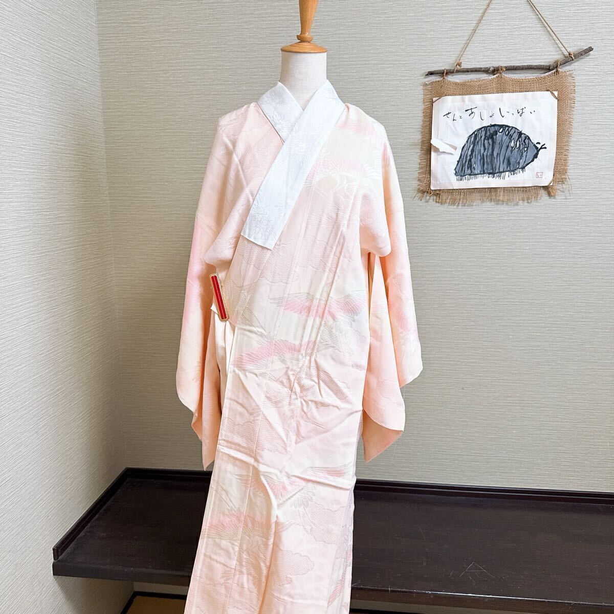 > 【き560】淡いピンク地×飛翔する鶴の長襦袢/上品グラデーション×地紋柄/リメイク素材にも◎