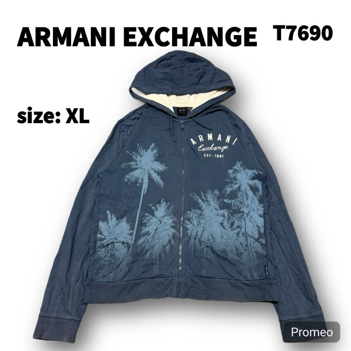 - 【T7690】ARMANI EXCHANGE アルマーニエクスチェンジ パーカー サイズXL ネイビー 紺 パームツリー レディース トップス 最落なし 古着
