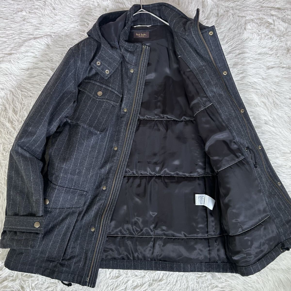 - 【美品】Paul Smith COLLECTION ポールスミスコレクション 中綿フィールドジャケット ウール地 2way パーカー ミドル丈 ストライプ コート