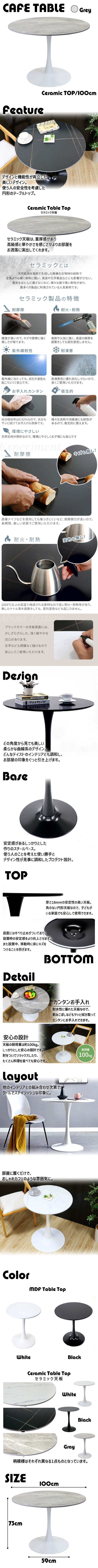 > 送料無料 カフェテーブル ダイニングテーブル 人工大理石天板 直径約100cm グレー おしゃれ 円形テーブル 丸テーブル ラウンドテーブル