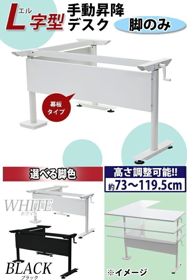 - 送料無料 昇降デスク L字型 手動 脚のみ 脚均等荷重約80kg スタンディングデスク 上下昇降デスク 手動昇降 上下昇降 昇降デスク 高さ 調節