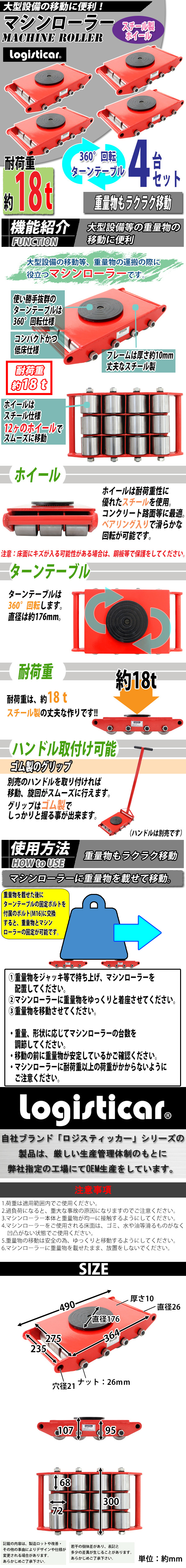 > 送料無料 マシンローラー 耐荷重約18t スチール製ホイール 4台 4台セット 360° ターンテーブル 回転台 運搬ローラー 運搬マシンローラー