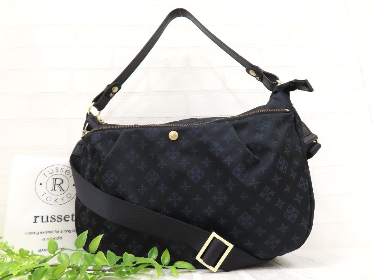 - ◆美品◆russet ラシット◆ナイロン カーフ レザー 本革◆2way ハンド ショルダー バッグ◆ネイビー ブラック G金具◆日本製◆N10366