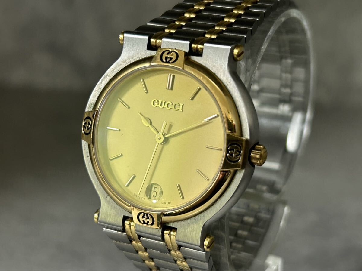 > 1円〜 GUCCI グッチ 9000M QZ クォーツ ゴールド文字盤 メンズ レディース 腕時計 【不動品】