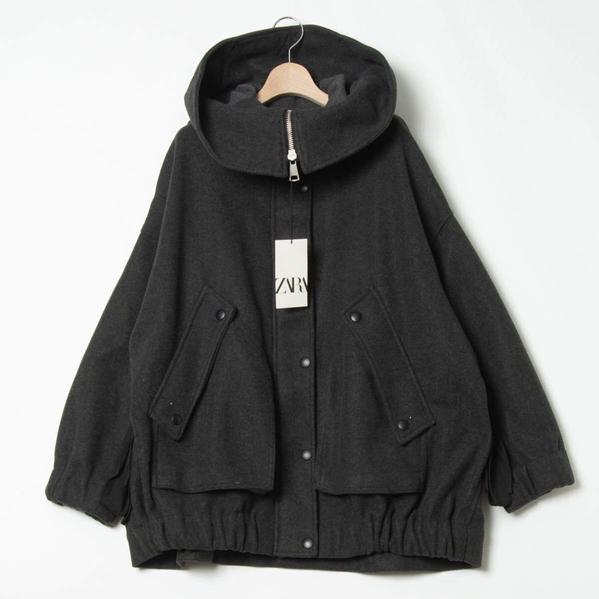 > 【1円スタート】タグ付 未使用 ZARA ザラ フードブルゾン 7522275922 レディースXS-S オーバーサイズ ポリエステル 裏なし グレー アウタ