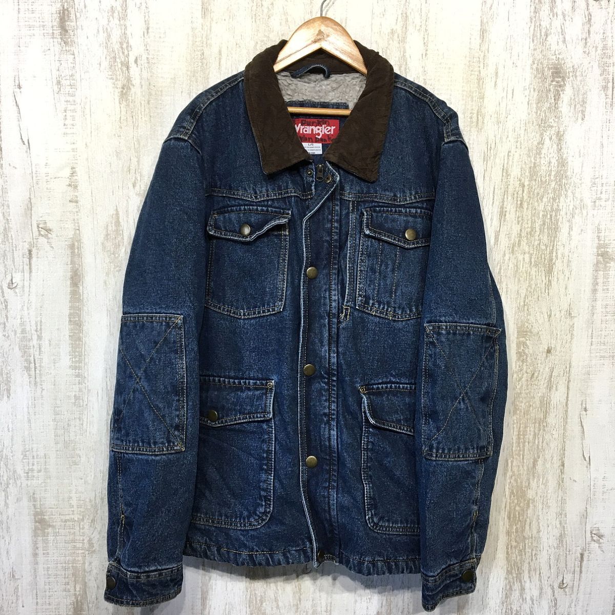 - V489☆【アメカジ 裏ボア デニムジャケット カバーオール】wrangler ラングラー ジージャン L