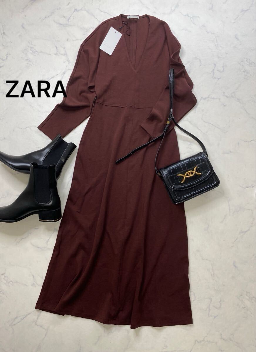 - ZARA ザラ★タグ付き未使用★大人可愛い★美ライン インターロック スウェット調 ドルマン ロングワンピース★チョコブラウン Sサイズ1041