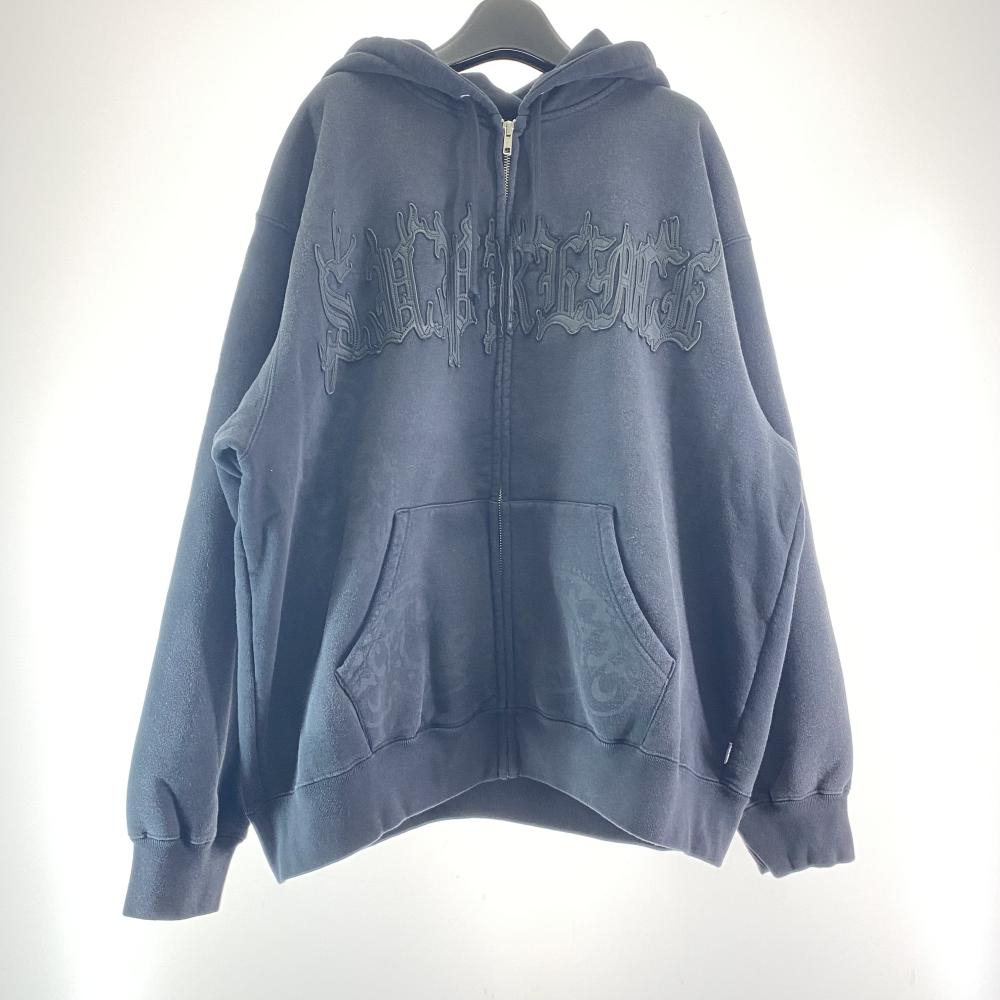 - 【中古】Supreme 25SS Leather Applique Zip Up Hooded Sweatshirt サイズL ブラック シュプリーム 25SS レザーアップリケ [240017717045]