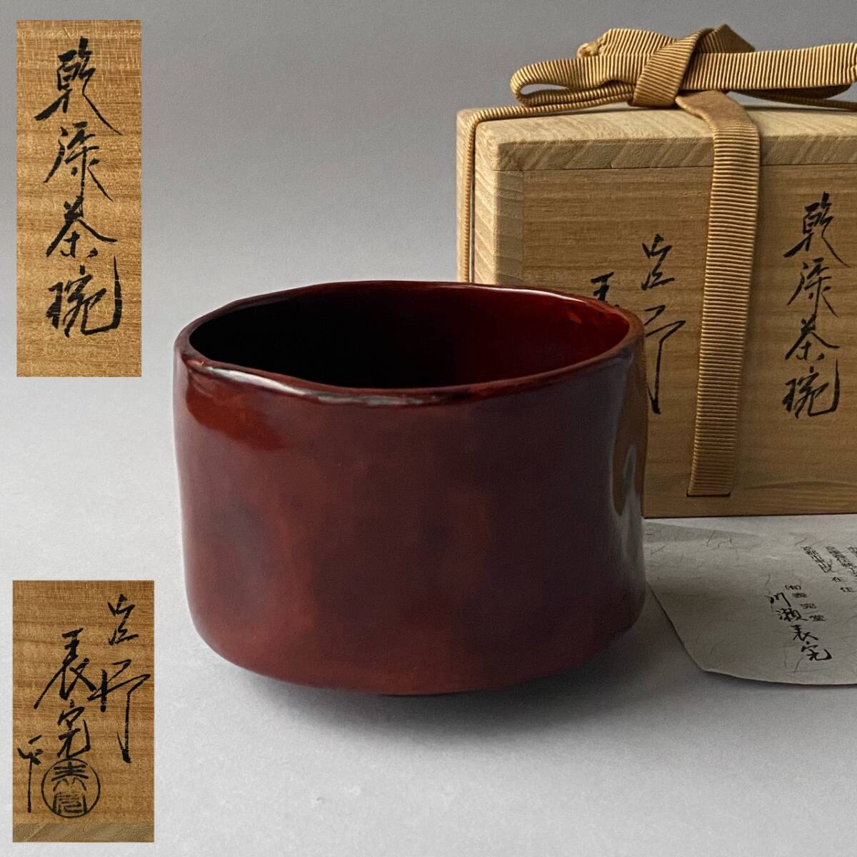 - 塗師 川瀬表完 作「乾漆茶椀」共箱 栞付き 茶道具 茶碗 検) 京塗師 表派 伝統工芸 漆芸 表千家 裏千家 煎茶 華道 骨董 古美術 時代 名工