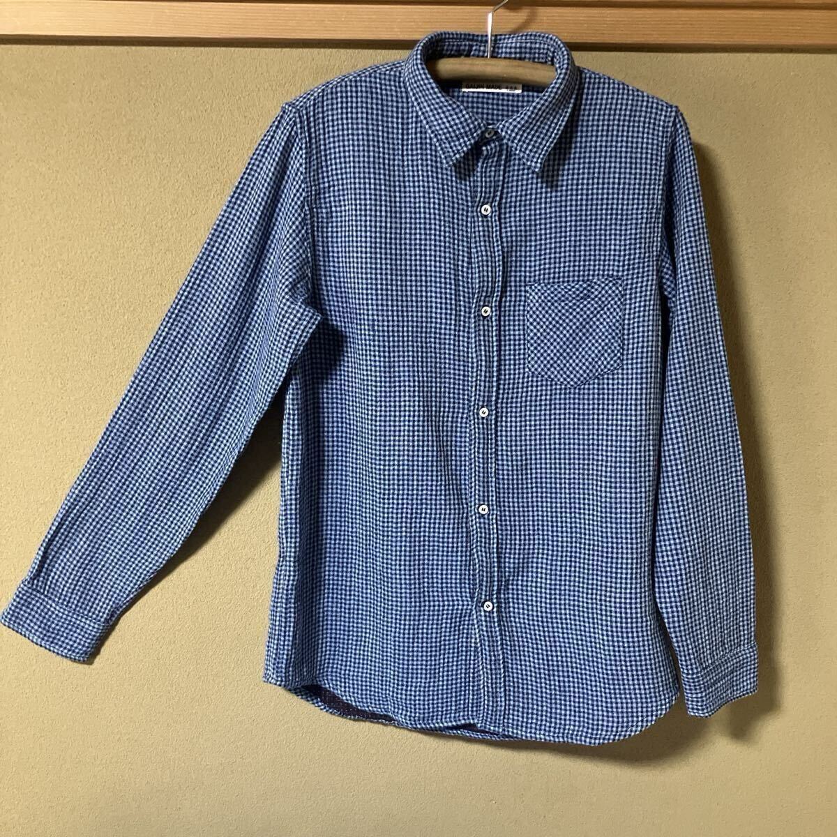 - ガイジンメイド、ダブルガーゼスモールチェックシャツ ブルーxホワイト Lサイズ