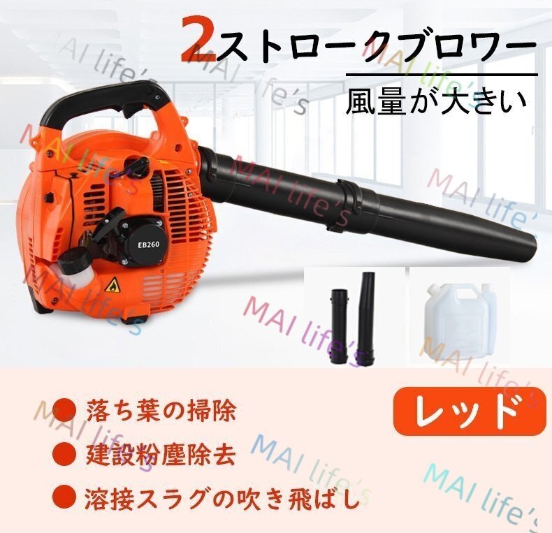 > ハンドヘルドブロワー エンジンブロワー コードレスエンジンブロワー 洗車 落ち葉 2ストローク 25cc パワー 7.8m3/分 レッド
