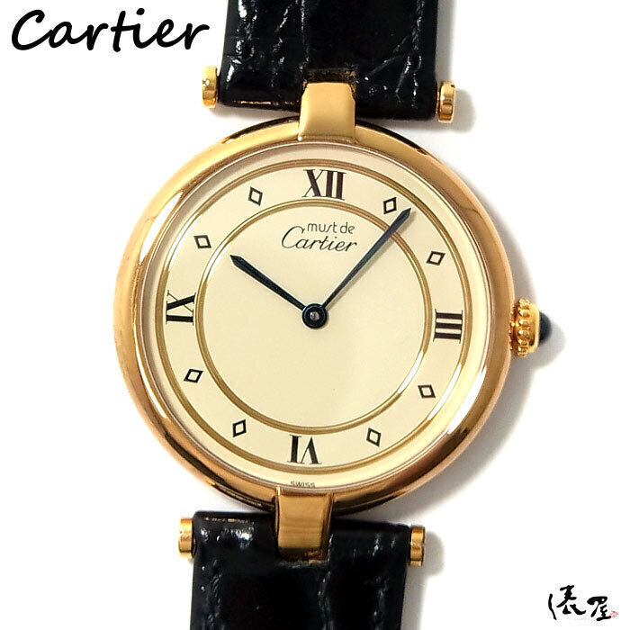 > 【カルティエ】マストヴァンドーム LM 4ローマン メンズ 極美品 ヴィンテージ 時計 Cartier 俵屋