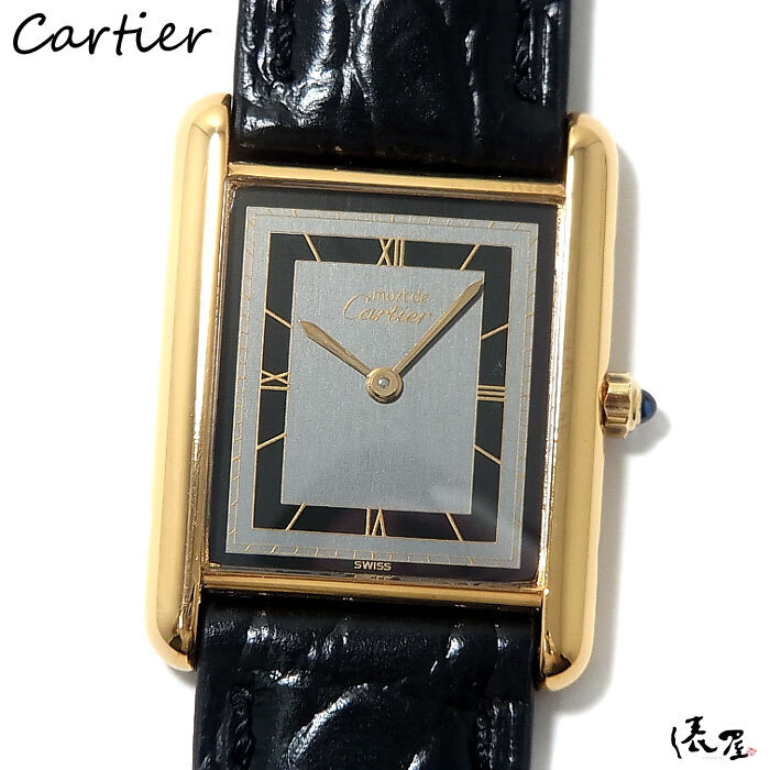 > 【国際保証書】カルティエ マストタンク LM グレー文字盤 極美品 OH済み ヴィンテージ QZ 時計 Cartier Tank 俵屋