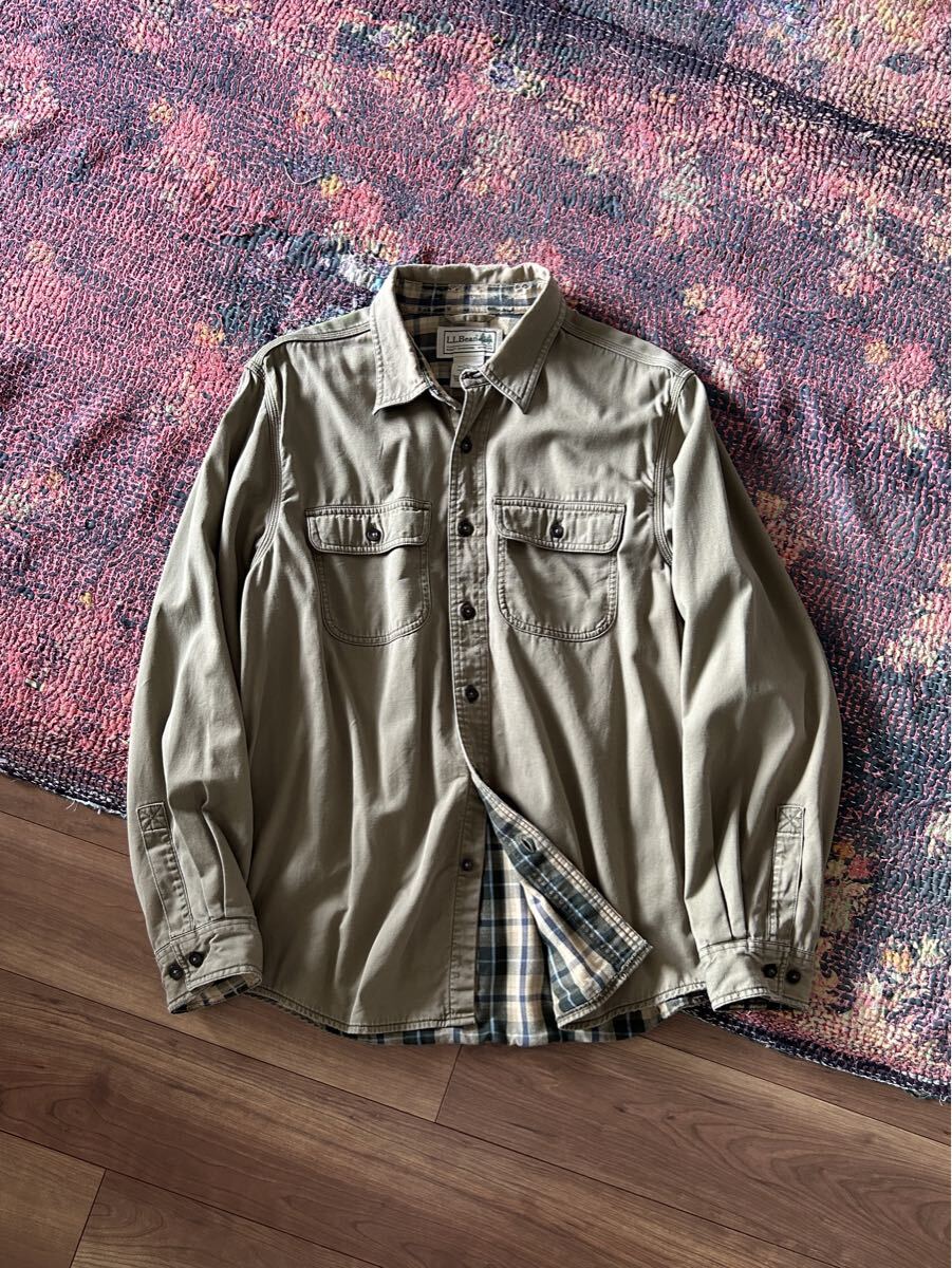 > L.L.BEAN COTTON TWILL FLANNEL CHECK LINED WORK SHIRT LATE 1990s エルエルビーン ワークシャツ L フランネル ボロ 古着