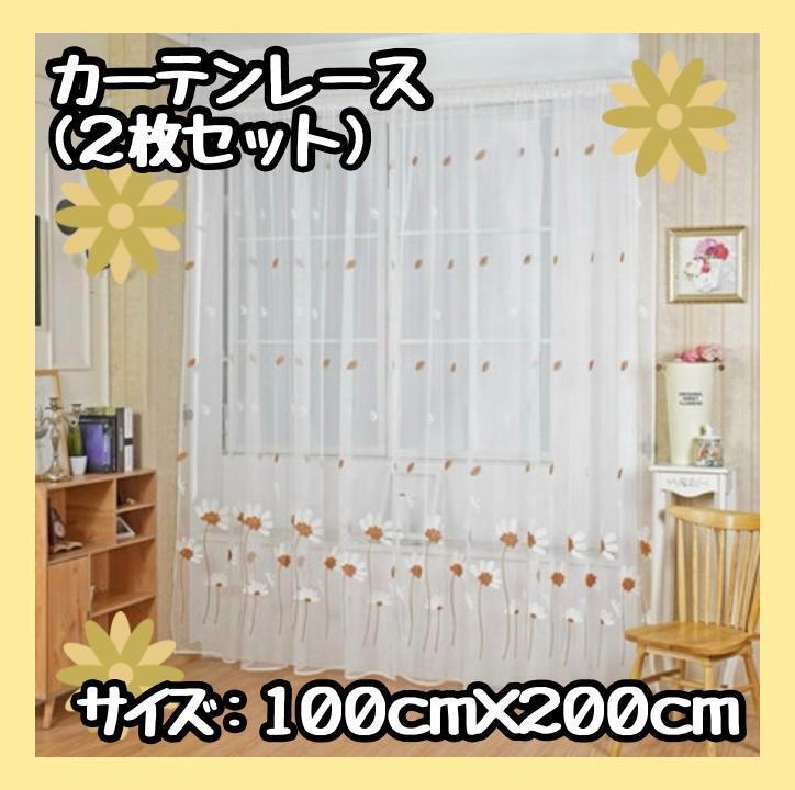 > 【新品】カーテン レース 2枚セット 100×200 オレンジ 花柄 おしゃれ