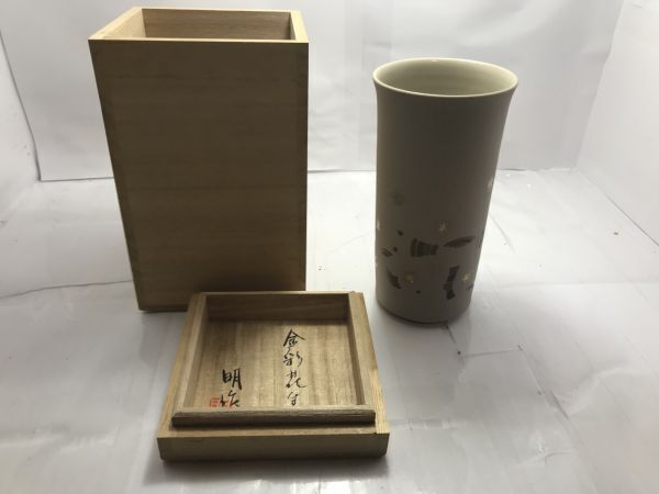 - ★金彩 明作 花瓶 高さ約18.5㎝ 直径約9.5㎝ 中古 茶器 茶道具 宮田 明 ゆうパックおてがる版