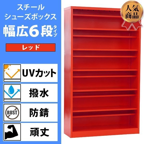 - 送料無料 ロッカー おしゃれ スチール シューズボックス 24人用 レッド 幅広6段タイプ オープンタイプ 棚板付き 扉なし 1列6段 UVカット