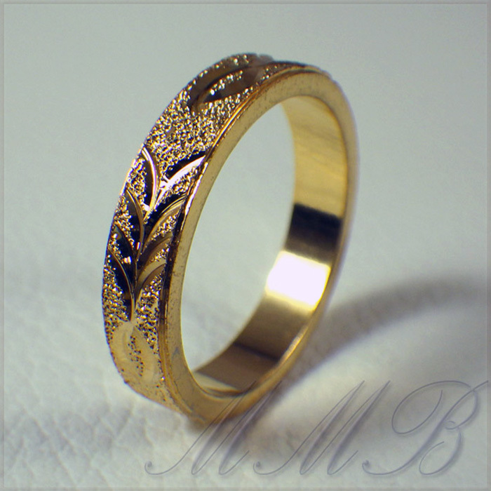 - [RING] 18K GOLD FILLED ラグジュアリー シャイニング リーフ カット デザイン サンド加工 5mm ゴールド リング 27号 (6g)