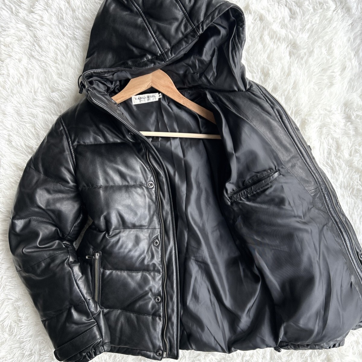 - VANQUISH 【極上のラムレザーダウン】ヴァンキッシュ ラムレザー ダウンジャケット 羊革 キルティング ブラック 黒 メンズ 46 Mサイズ