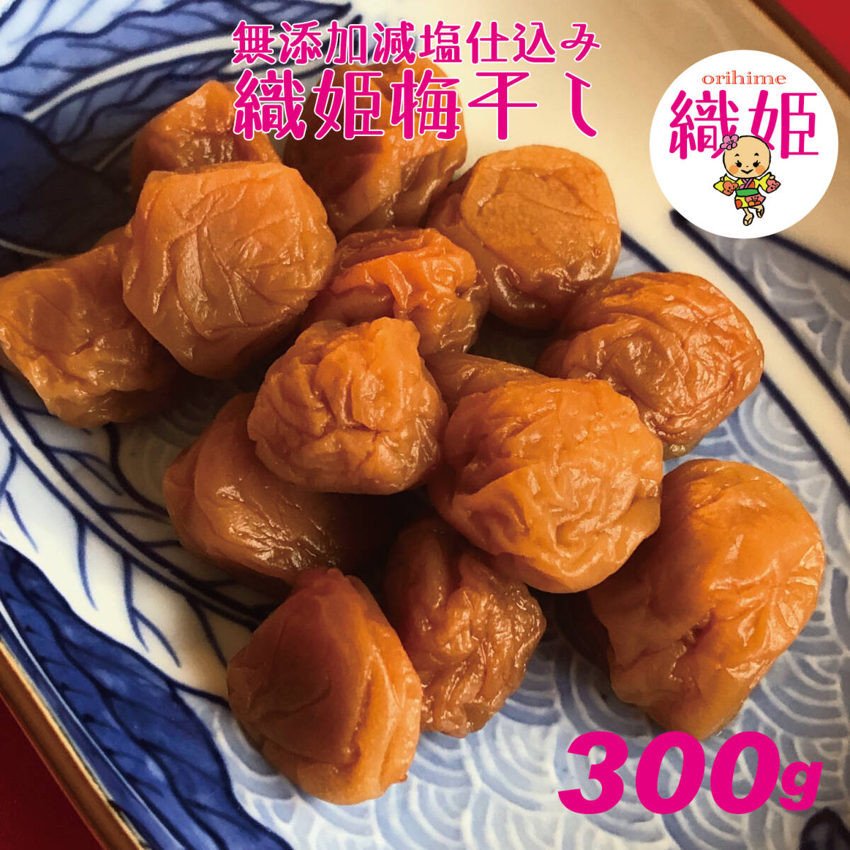 - 海の恵みと大地の恵み、天日塩使用の地下室手作り無添加完織姫小梅干し300g