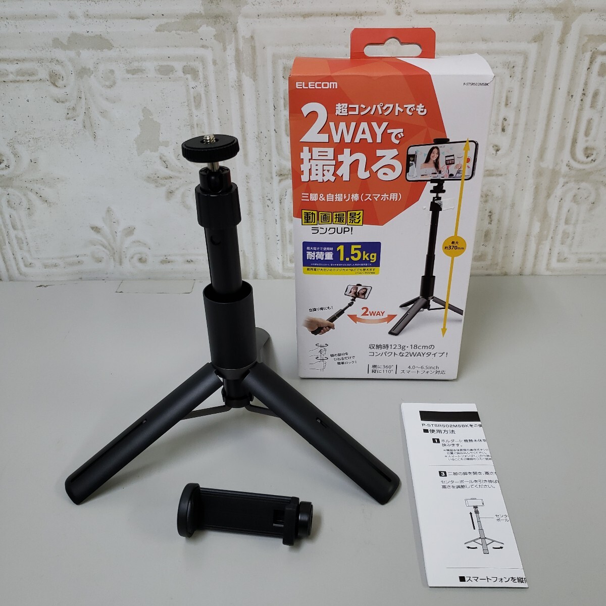 - 710y2701★エレコム 三脚 自撮り棒 【 スマホ用 】 2way 高耐荷重 ブラック P-STSRS02MSBK