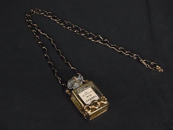 > 1円 ■美品■ CHANEL シャネル N°19 香水瓶 オーデパルファム ネックレス ペンダント アクセサリー ゴールド系×ブラック系 FP7924