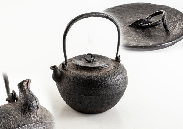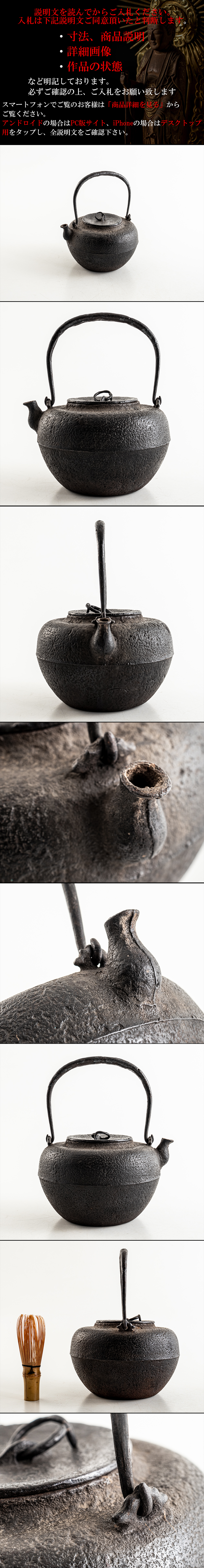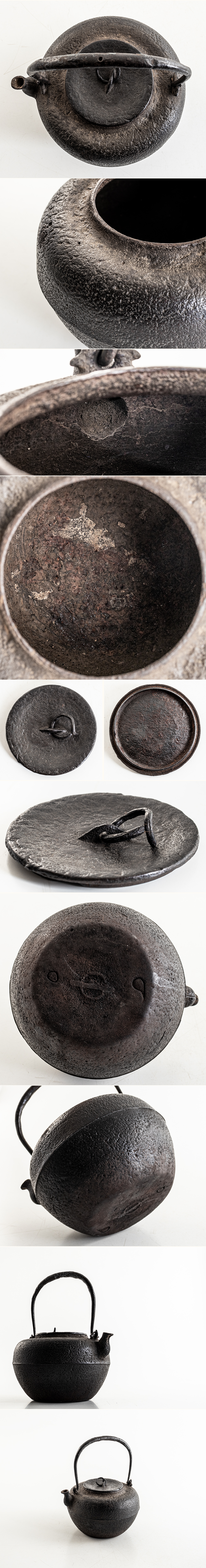 - 忠三郎 釜師造 鉄蓋 有環摘 丸形 鉄瓶 紫砂 鐵壷 湯沸 茶器