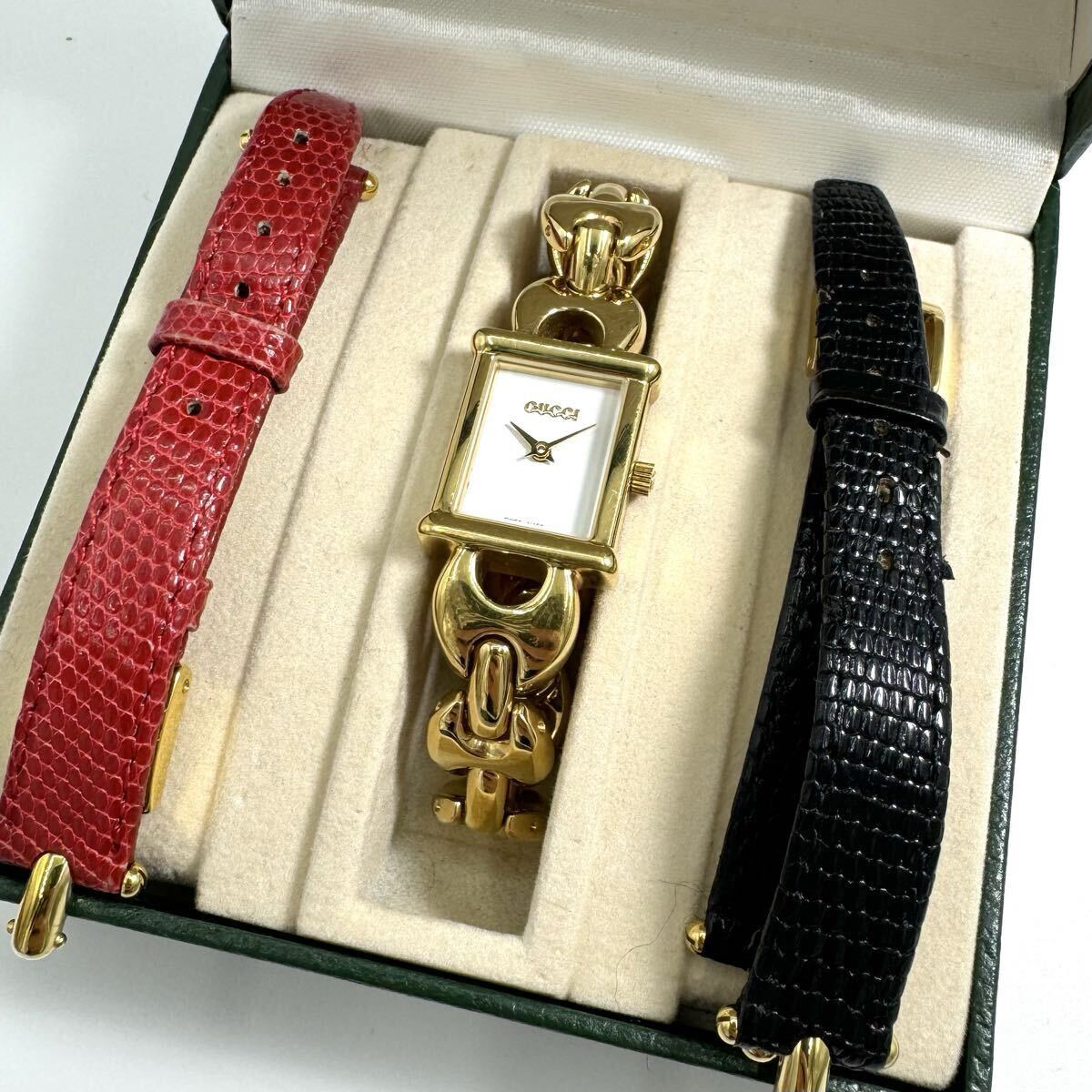 > 【美品】 GUCCI グッチ 腕時計 1800L チェンジベルト クォーツ QZ ゴールド レディースウォッチ ヴィンテージ 白文字盤 SWISS スイス