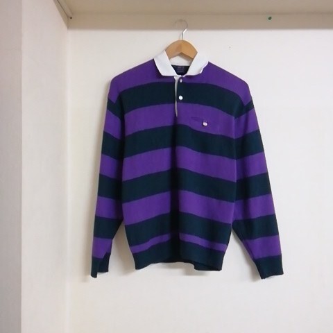 - ★【古着】 mont-bell(モンベル) 長袖ポロシャツ(トップス) ボーダー パープル Sサイズ
