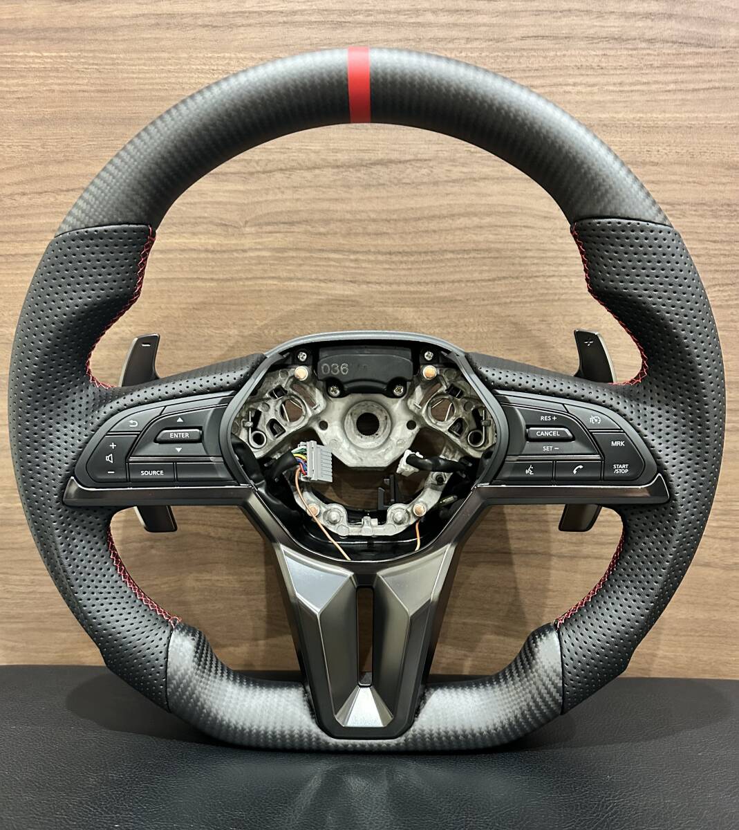> ☆1スタ☆ 日産 GTR オーダーステアリング カーボン本革パンチング 後期 NISSAN R35